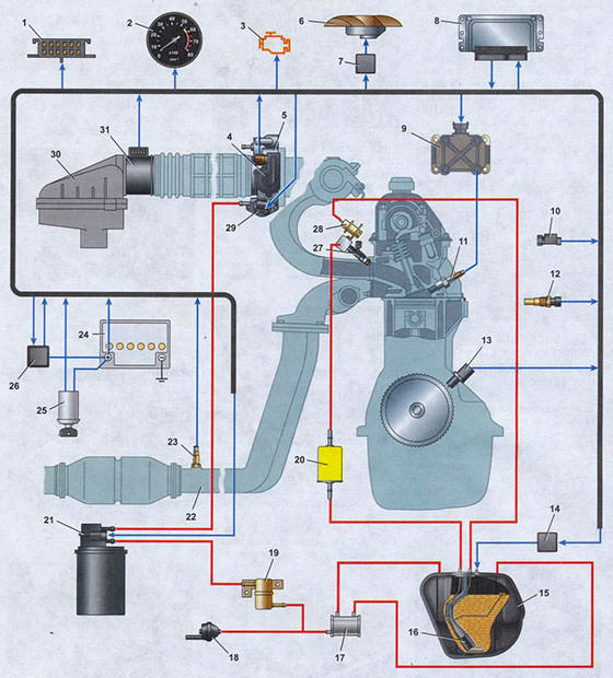 Двигатель 2107 инжектор схема