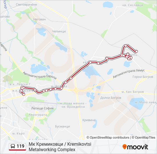 Движение автобуса 119