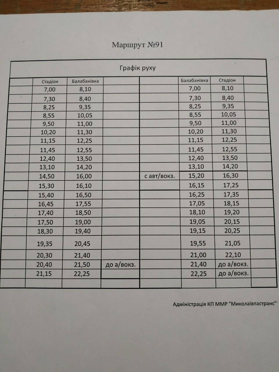 Движение автобусов 91