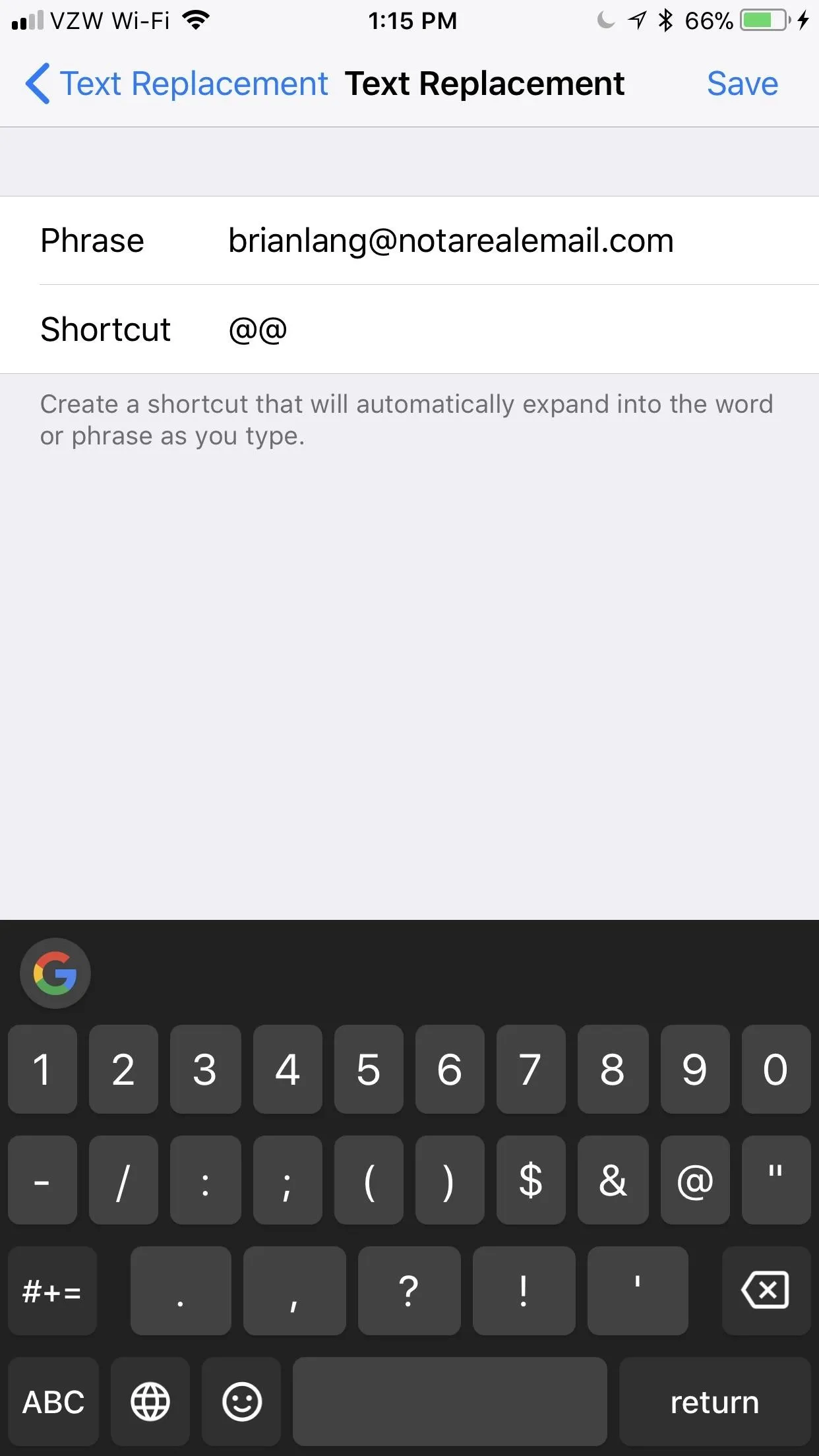 Двоеточие на айфоне