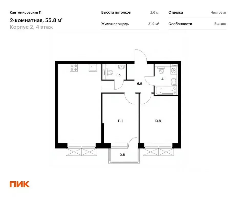 Двухкомнатная квартира кантемировская