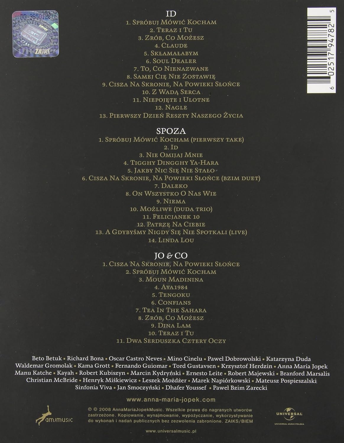 Anna Maria Jopek is a Polish vocalist, songwriter, and improviser . She represented her country in the 1997 Eurovision Song Contest, with the song "Ale jestem" and finished 11th out of 25 participating acts; and in 2002, she collaborated on an album with jazz guitarist Pat Metheny . She has received numerous awards for her music, including Michel Legrand's Personal Award in Vitebsk in 1994, as well as all of the awards for music in Poland, together with gold and platinum records .