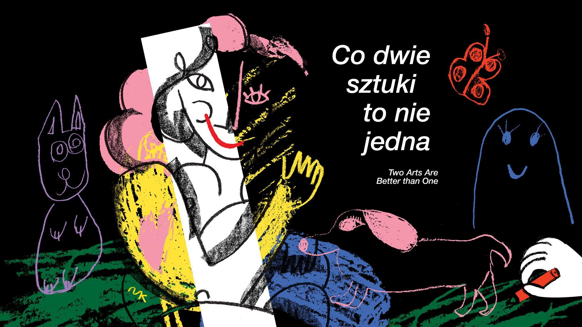 A teraz zobaczcie, co do powiedzenia o wystawie „Co dwie sztuki to nie jedna " ma dziesięcioletni Janek: Cała wystawa to efekt trochę szalonej współpracy rodziców i dzieci . Można na niej znaleźć Bananowego goryla, W poszukiwaniu straconego czasu, Blok zerojedynkowy, Ruchomego Pikachu, Warkocze Białki, Przedjęzykowy kosmos i wiele . . .