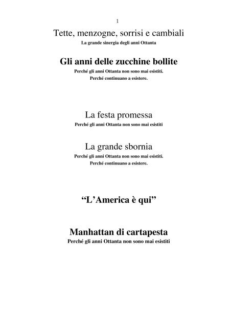 E, a proposito di umorismo involontario, in questa pagina a parte, pubblichiamo una serie di avvisi apparsi nelle parrocchie che non mancheranno di suscitare ilarità . Buon divertimento a tutti! Dio ha creato il mondo . Prima o poi ci riproverà . Alfredo Accatino Chissà Adamo quante Eve si sarà mangiato prima di capire a cos'altro potessero servire… ibid . Io credo in Dio .