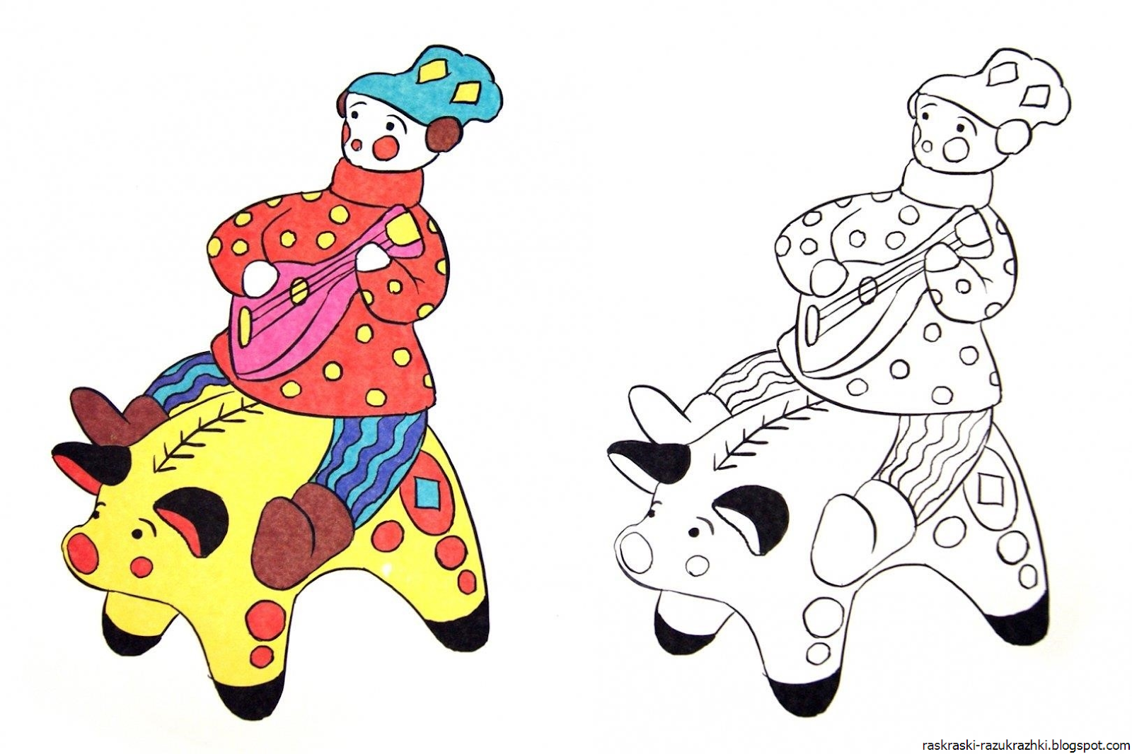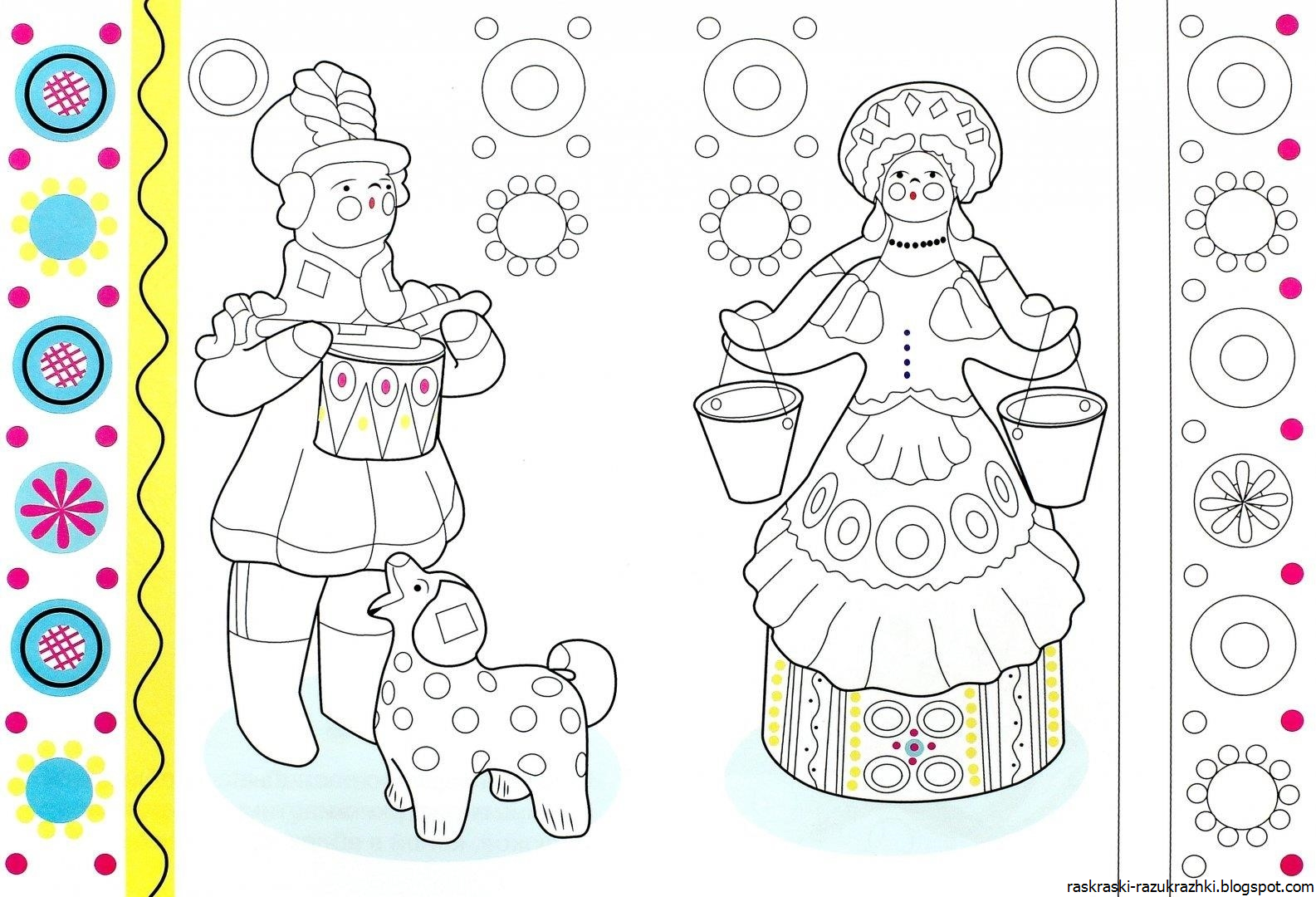 Дымковская Разукрашка В Цветном Виде Картинки