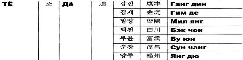 Существует три китайских иероглифа для обозначения корейской фамилии Дё (Чжао).