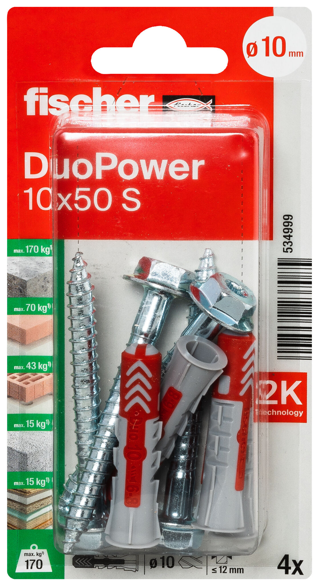 Дюбель duopower 10x50
