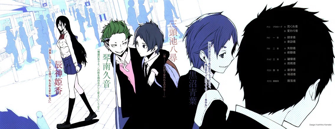 Дюрарара!! - аниме из четырех сезонов, манга из 18-ти томов, ранобэ из 13-ти томов + две дополнительные манги и дополнительное ранобэ.