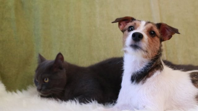 Джек рассел и кошка