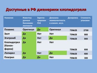 КЛОПИДОГРЕЛ: ОРИГИНАЛЬНЫЙ ПРЕПАРАТ ИЛИ ДЖЕНЕРИК? - тема . . .