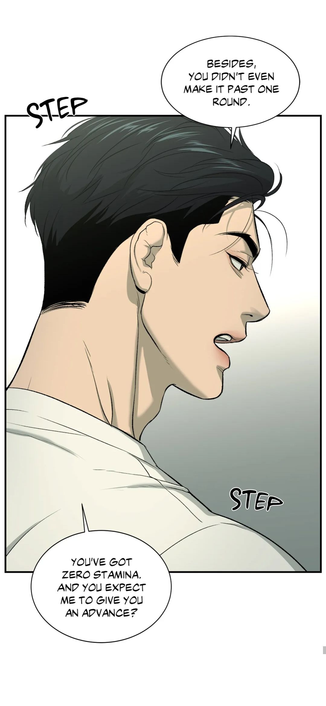 - И ты выдохся на первом круге. Ноль выносливости. А ещё просишь зарплату заранее?