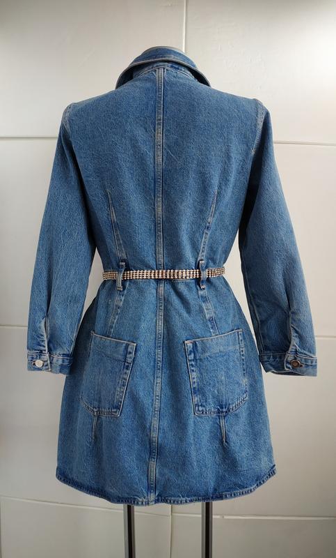 Джинсовое платье мини с запахом и поясом со стразам…