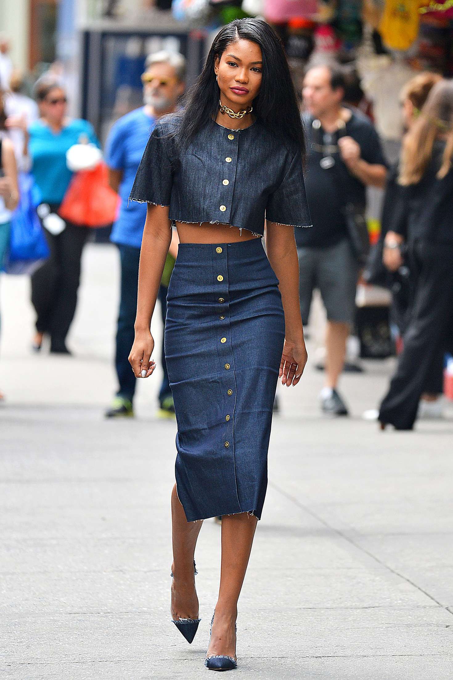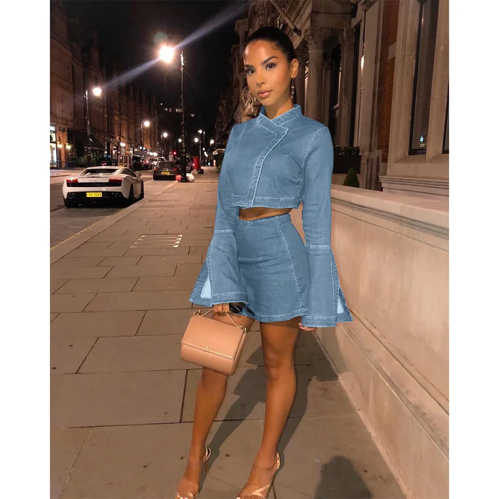 Джинсовый топ с юбкой 90 фотографий