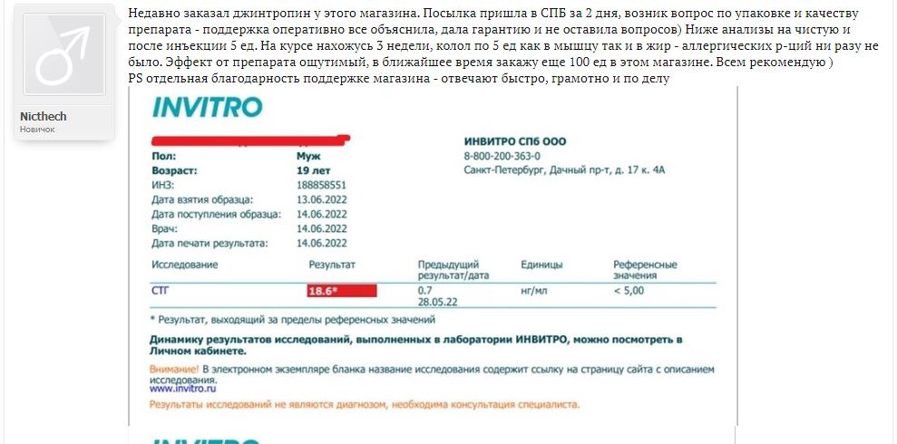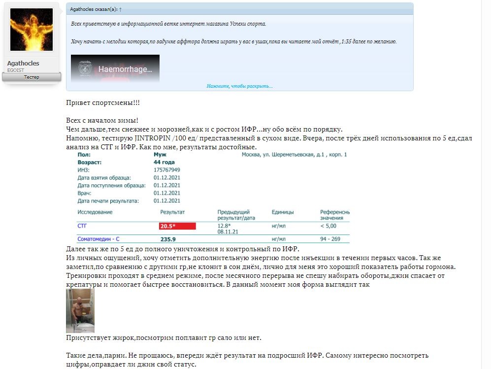 Анализ от тестера форума СТГ и Начальный ИФР до приема джинтропинАнализ ИФР от тестера форума через 20 дней после приема джинтропинАнализ стг от тестера форума Анализ СТГ от клиента с форума