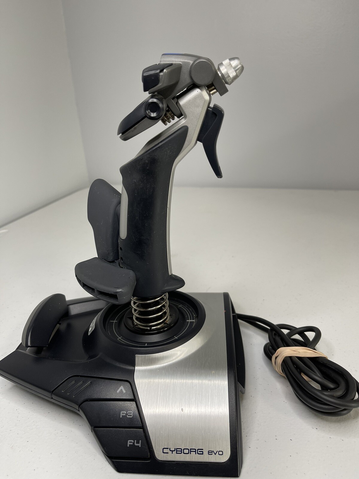Джойстик Saitek Cyborg EVO . Инструкция по эксплуатации . Основные свойства: 4 оси, 8 кнопок, рычаг регулятора тяги . 8-ми позиционный переключатель видов . вращающаяся рукоятка . кнопка Shift