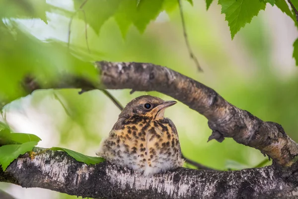 Młody samiec Eurazjatycki wróbel jastrząb w sosnowym lesie . . .