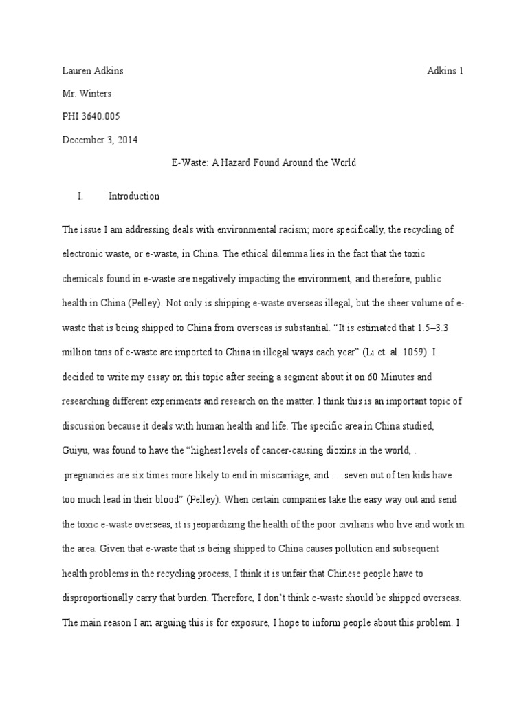 e-waste Essay - 1160 Words | Bartleby