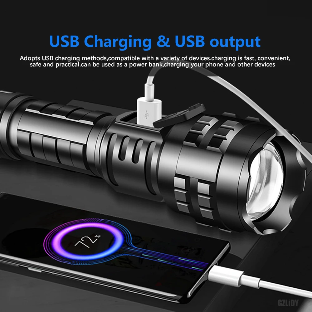 XcclwKgTBsHere you can buy E2 P70 LED High Powerful LED Flashlight Tactical Telescopic Zoom Torch Emergency Lighting USB Rechargeable Waterproof Lanternas with free delivery to your post office.