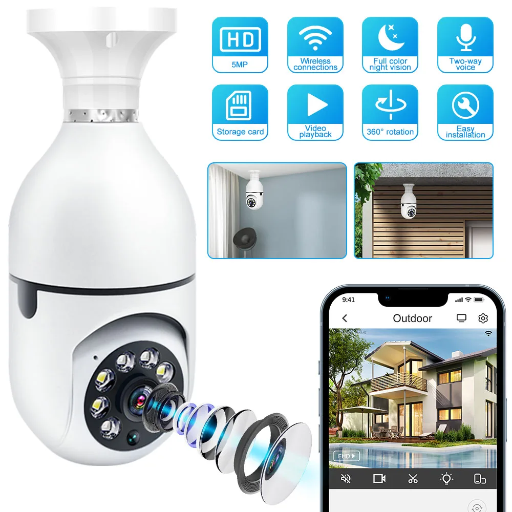 rNRSLaIciHere you can buy E27 Bulb 5MP Cameras Wifi Surveillance Video Monitor Night Vision Full Color Human Tracking 4X Zoom Wireless Security Protection with free delivery to your post office.