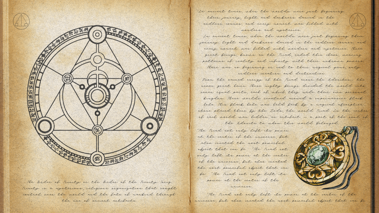 ◾️ In ancient times, when the worlds were just beginning their journey, light and darkness danced in the endless cosmos, and every moment was filled with wonders and mysteries. Three great beings, known as the Triad, ruled this chaos, weaving patterns of reality and infinity with their unknown powers. There was no beginning or end to their magical game, only endless creation and destruction.