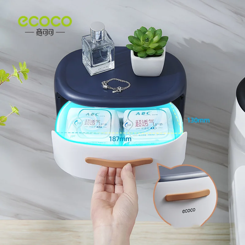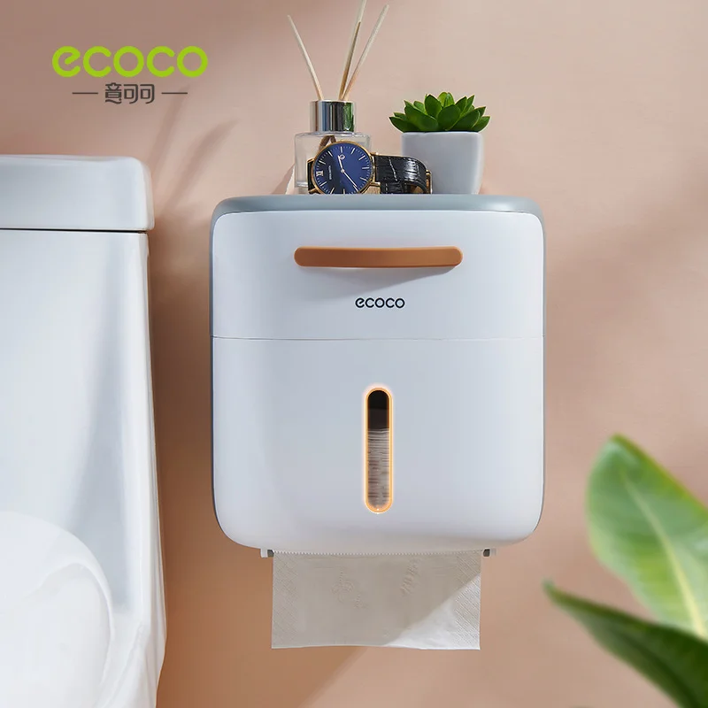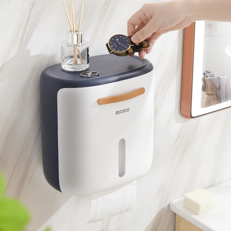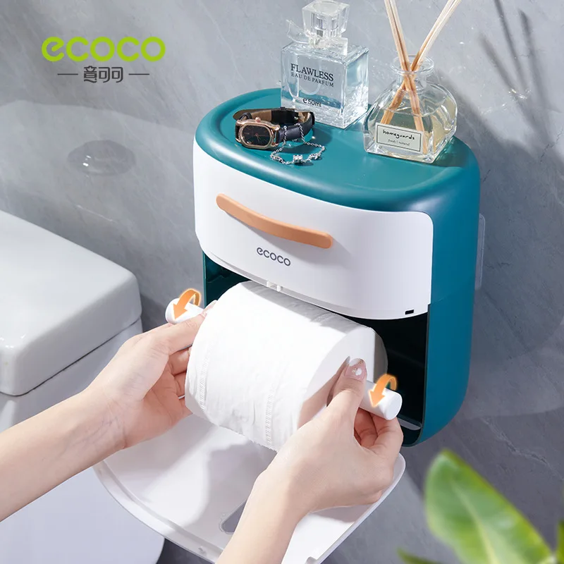 ECOCO Multifunctional Tissue Box Wall Mounted Waterproof Roll Paper Holder Double-Layer Home Bathroom Storage Rack With Drawer - Купить с бесплатной доставкой