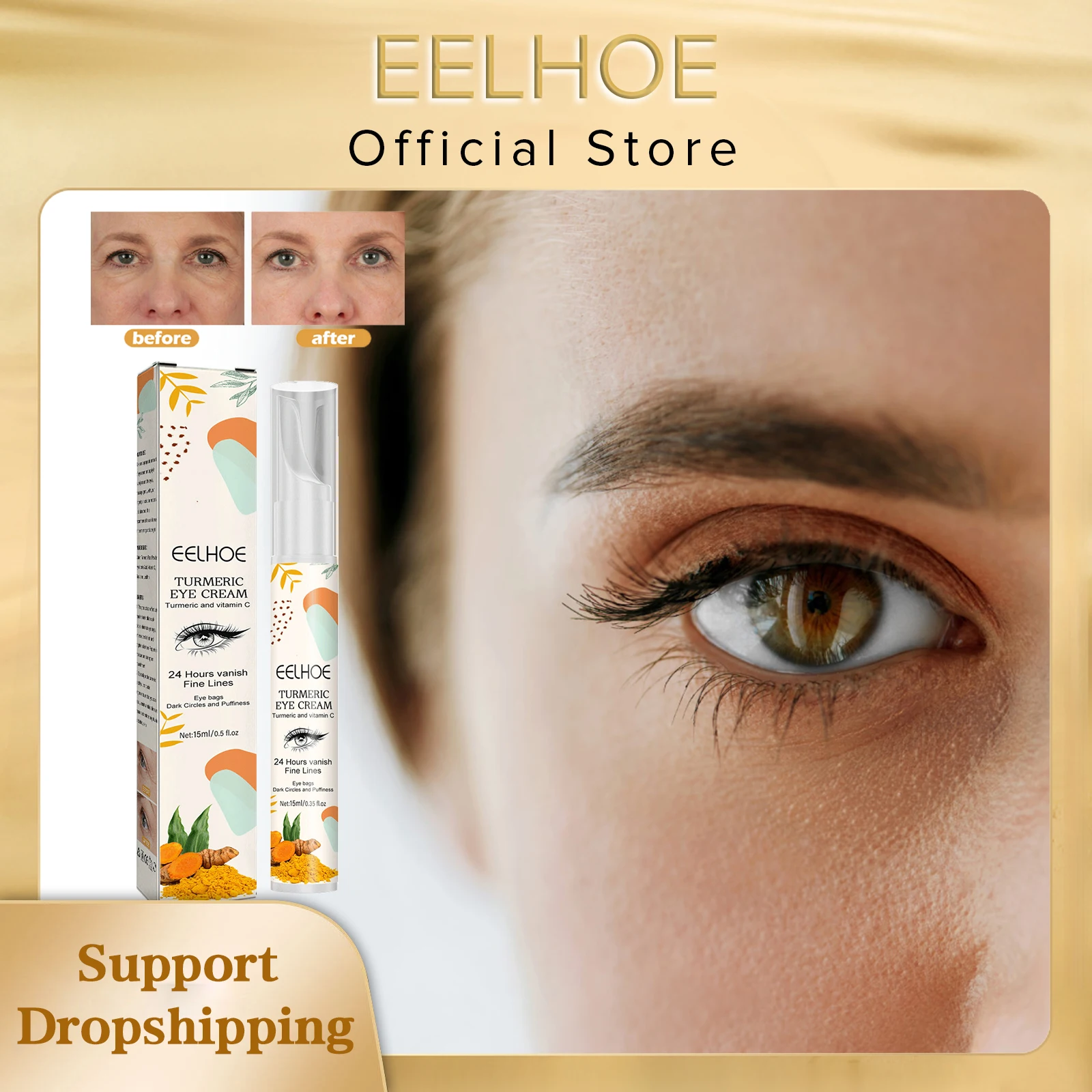 «EELHOE Turmeric Whitening Eye Cream Instant Wrinkle Remover Anti Dark Circle Fade Fine Line Brighten Moisturizer Eye Care Cream» по лучшей цене на рынке! Всего за 3$ (285рублей)
