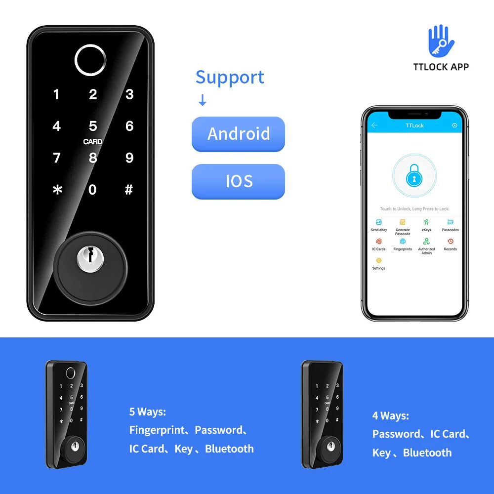 EGFirtor Bluetooth Password Door Lock TTLock APP Remote Fingerprint RFID IC Card Key Electronics Door Lock Via Gateway Control - Купить с бесплатной доставкой