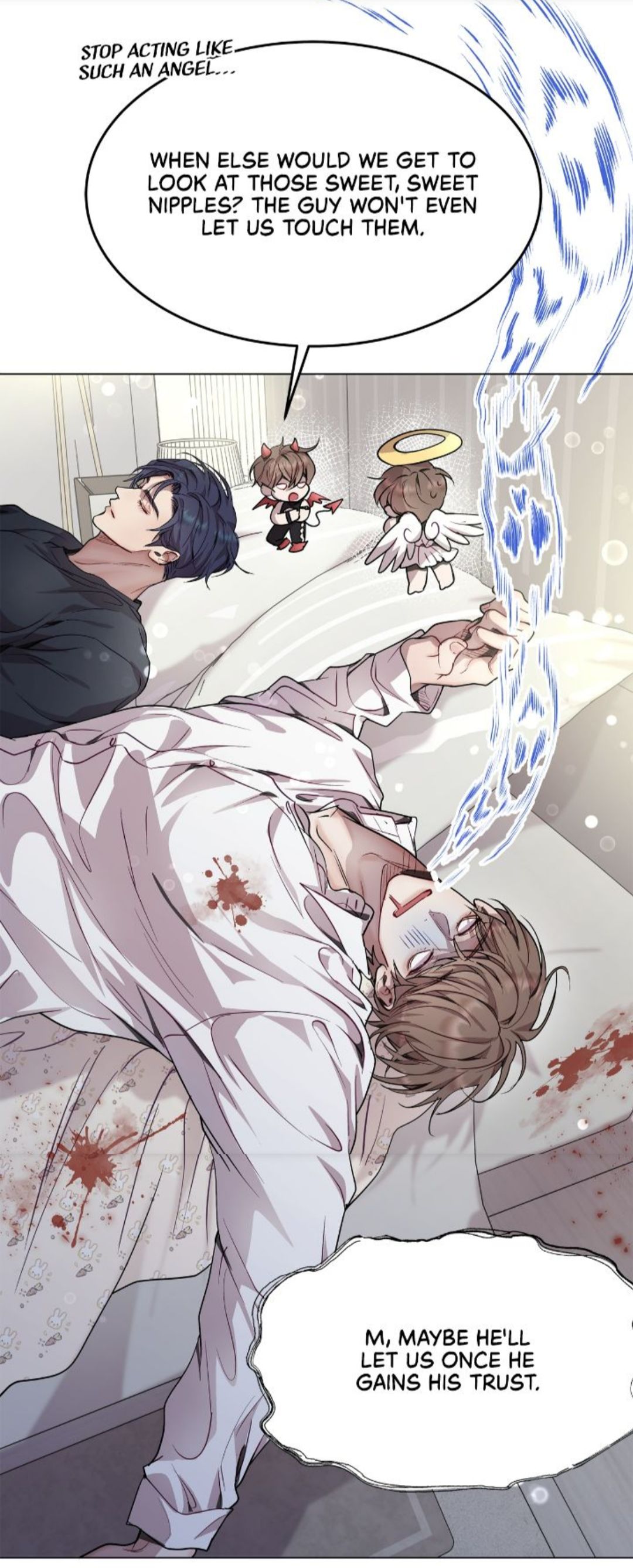 - Хватит прикидываться ангелочком... Когда еще нам выпадет шанс взглянуть на эти милые милые сосочки? Этот парень даже не позволяет нам прикоснуться к нему.