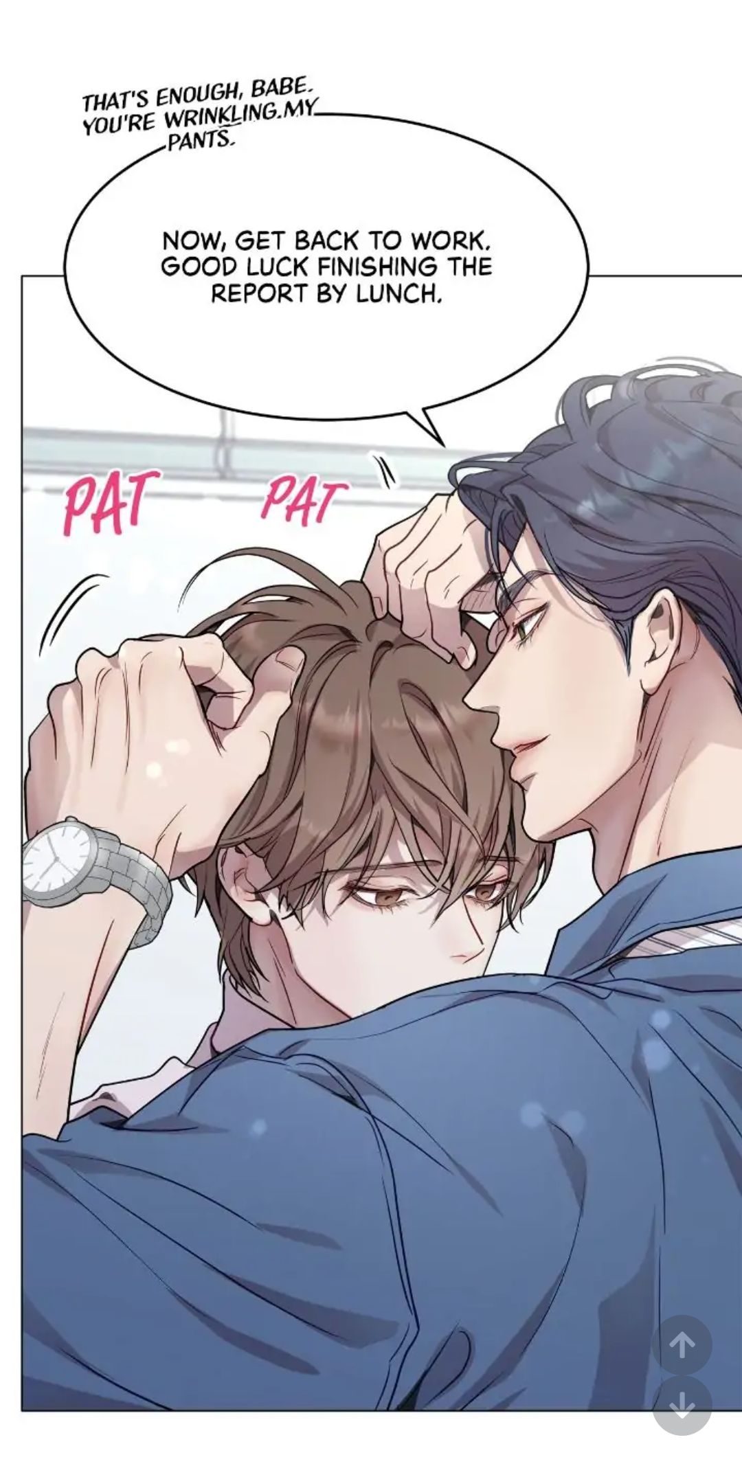 - Этого достаточно, малыш, ты помнешь мне штаны. А теперь возвращайся к работе. Удачно тебе разобраться с отчетом к обеду.