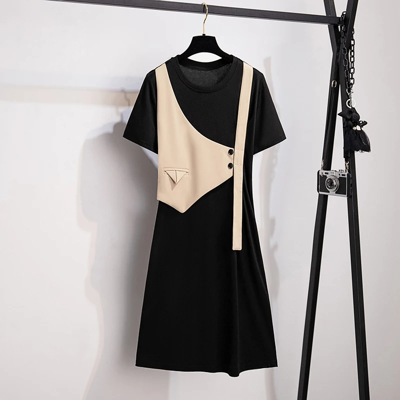 «EHQAXIN Summer New Women's Dress 2022 New Irregular Contrast Color Stitching Round Neck Short-Sleeved Long Dresses Female L-4XL» по лучшей цене на рынке! Всего за 25$ (2375рублей)