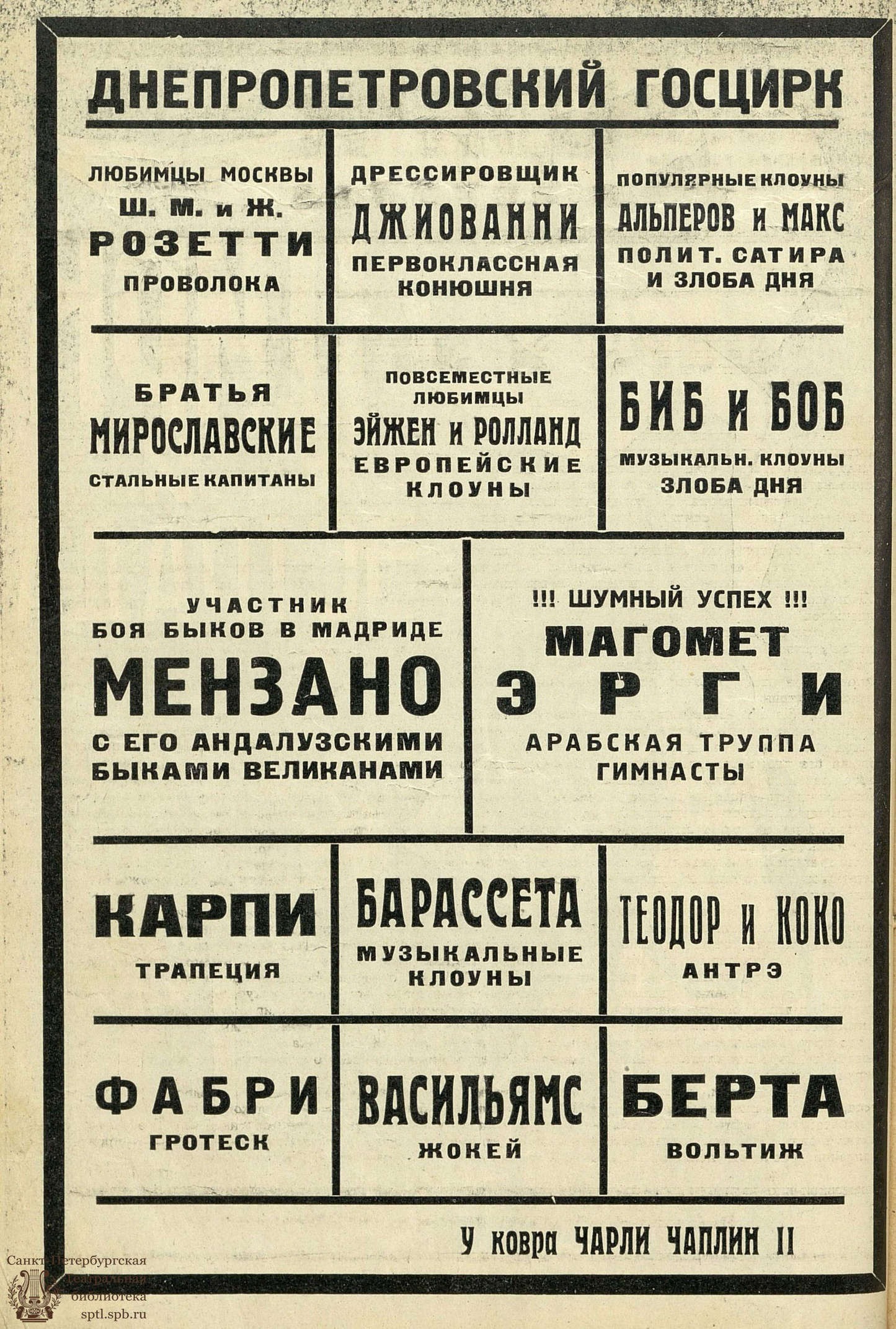 Такой соло-клоун, как Виталий Лазаренко, одновременно ведущий разговор с публикой и работающий куплетистом-имитатором, притом чудный прыгун, является и по своему жанру и по амплуа не только единственным для СССР, но и редким исключением для заграницы.