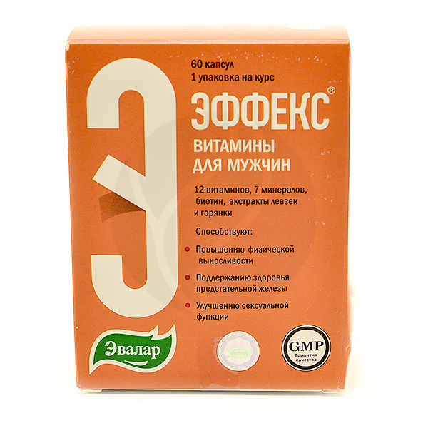 Заказать Эффекс витамины для мужчин 60 шт капс Эвалар онлайн по цене со скидкой с самовывозом в ближайшей аптеке . Инструкция по применению и отзывы покупателей на сайте аптеки .