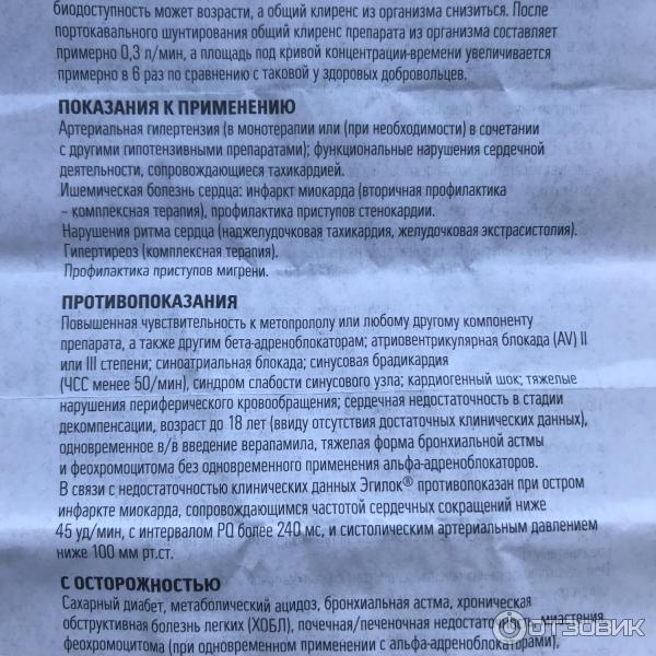 Эгилок: инструкция по применению, цена и отзывы . Показания . . .