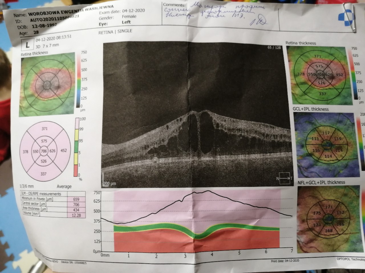 Появился макулярный отек сетчатки . 28 августа 2019г по квоте и 18 октября платно (61600 рублей) были сделаны инъекции Эйлеа в глаз в НИИ им Гельмгольца . Если после первого укола результат был хоть и мало, но положительный, то после 2-го укола -пошел в обратную сторону .