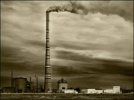 Эта труба — всем трубам труба . Её высота — 420 метров . Ну а дым от нее какой, как вы думаете? В верхней части спутникового снимка — дым от самой высокой трубы в мире и . . .