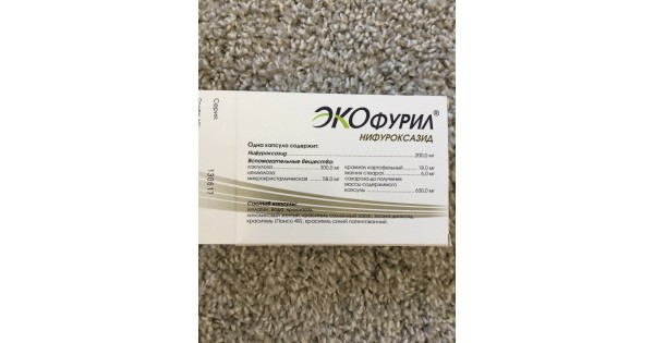 Экофурил . Экофурил - это капсулированное лекарство с мощными антибактериальными свойствами, направленными против кишечных инфекций . Главным действующим . . . в наличии . действующее вещество: Нифуроксазид . международное название: Ecofuril . совместимость с алкоголем: нет . при . . .