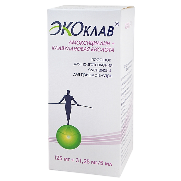 Экоклав Лекарственный препарат Формы выпуска и средняя цена порошок для приготовления суспензии для приема внутрь 250 мг/ 62,5 мг 5 мл 25 г 260 ₽ таблетки покрытые пленочной оболочкой 250/ 125 мг 15 260 ₽ таблетки покрытые пленочной оболочкой 875 мг/ 125 мг 14 350 ₽ порошок для приготовления суспензии для приема внутрь 125 мг/ 31,2 мг 5 мл 25 г