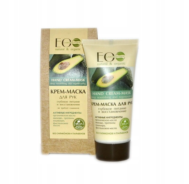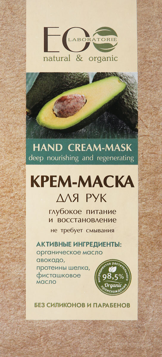 Эколаб - Крем-маска для рук 100 мл . Органическое масло авокадо питает и смягчает кожу, делая ее бархатистой . Экстракт кашемира увлажняет и омолаживает кожу .