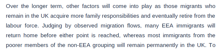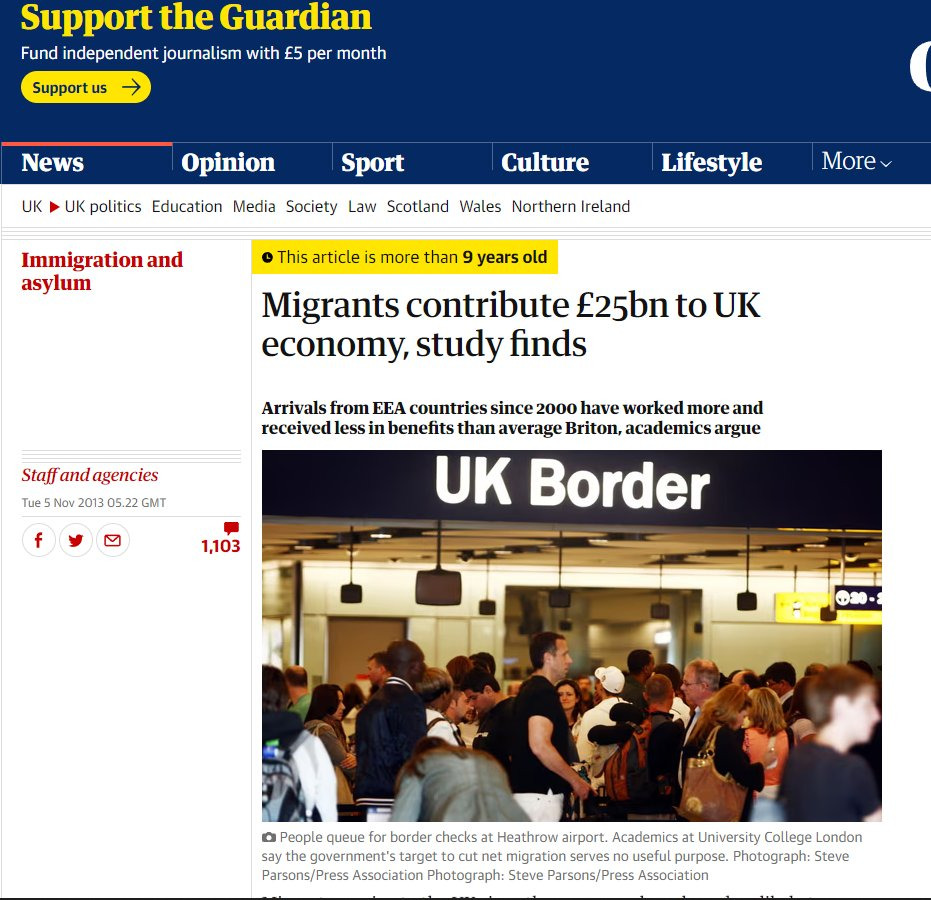 В докладе также содержится анализ вклада недавно прибывших мигрантов, и он оказался положительным. Однако этот анализ не даёт нам полной картины, поскольку не учитывает будущие затраты, например пик затрат на здравоохранение приходится по очевидным причинам на пожилой возраст, а мигранты в среднем весьма молоды. Разумеется, медиа решили освятить именно положительную цифру.