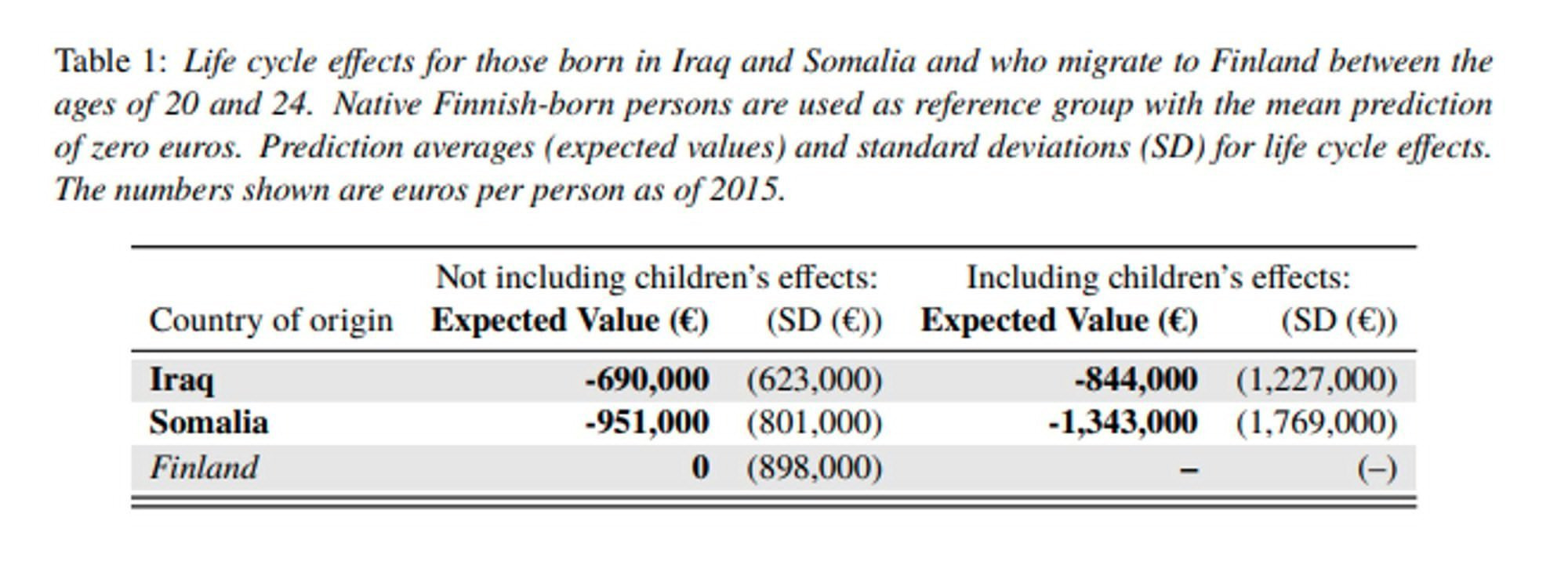 В Финляндии мигрант из Ирака (возрастом в 20-24 лет), решивший завести детей, обходится финским налогоплательщикам в €844,000 — на €1,27 миллионов больше, чем средняя финская семья. Хуже того, средний сомалиец даже без детей обходится финскому государствому практически в €1 миллион.