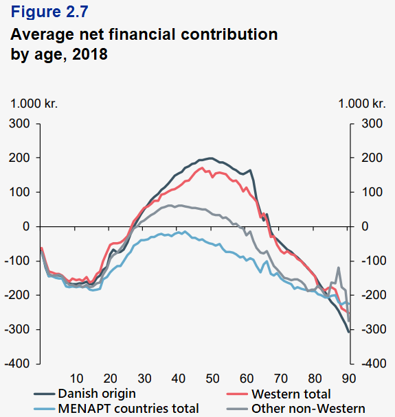В Дании средний коренной датчанин приносил бюджету 41 миллиард датских крон, в то время как мигранты и их потомки приносили убытки в размере 24 миллиардов крон. Однако и здесь мы видим знакомую картину — иммигранты из Западных стран были нетто-плательщиками, а незападные мигранты выглядят значительно хуже.