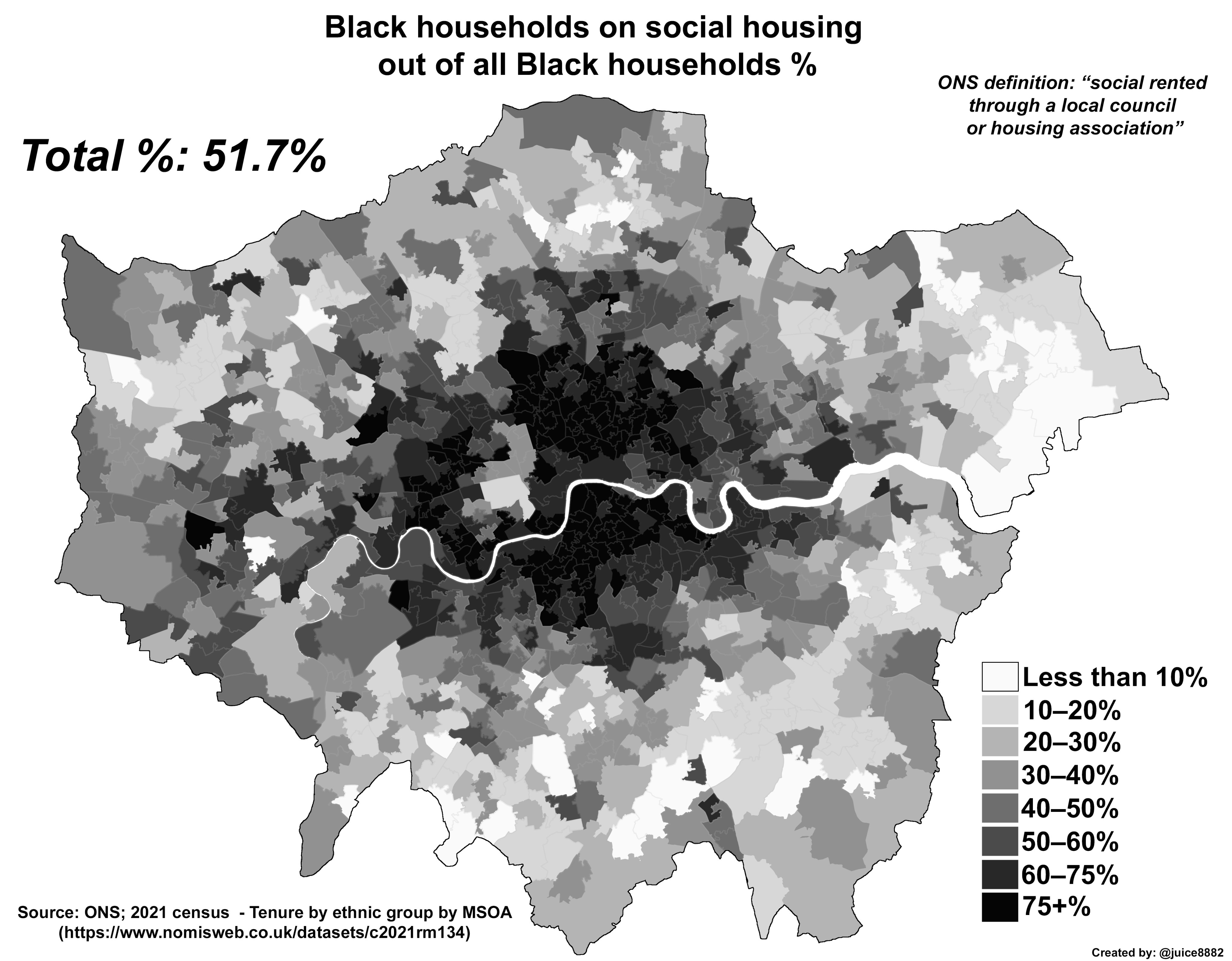 Так, например, в социальном жилье живут 72% (!) сомалийцев, 41% ямайцев и 37% ганцев. В Лондоне, печальном известным своими высокими ценами на жильё, 51% чёрных проживает в социальном жилье.