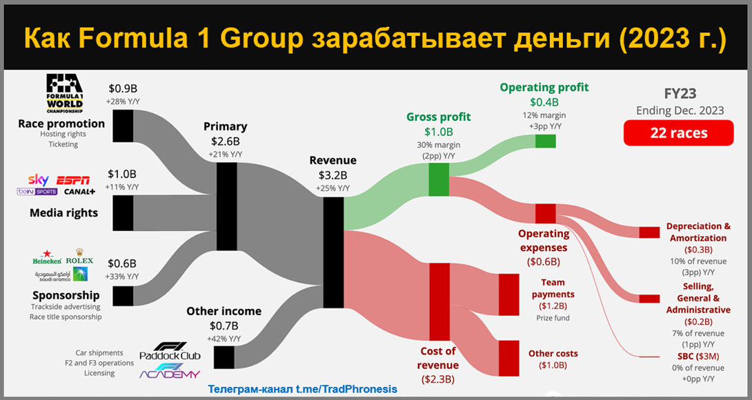 Выручка группы Formula 1 в 23 финансовом году выросла на 25% по сравнению с аналогичным периодом прошлого года и составила 3,2 миллиарда долларов США: