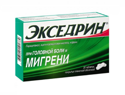 Экседрин все-таки купирует приступ, даже если вы поздно приняли препарат . . . . Стоит 290 рублей 20 шт, а вот упаковка подкачала и очень .если капсулы нормальные, . . .