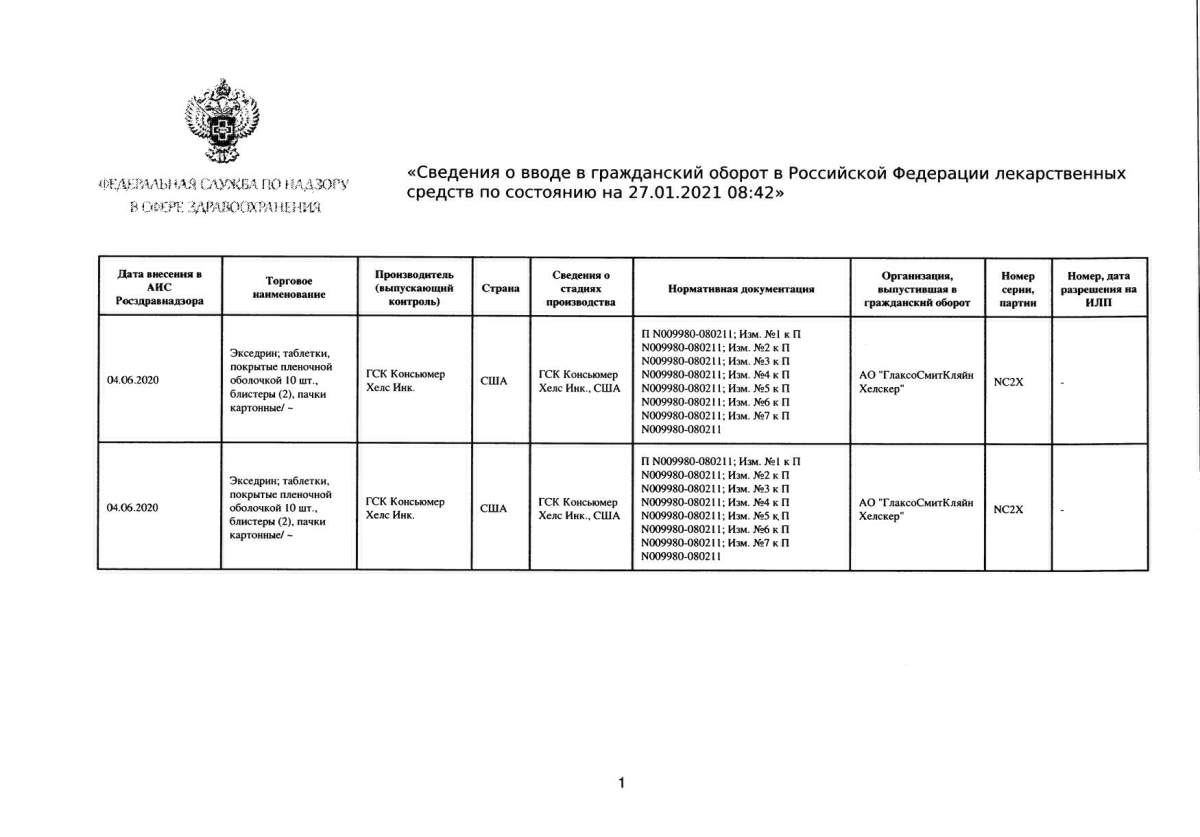 ЭКСЕДРИН инструкция по применению, отзывы, аналоги, цены и наличие в аптеках . Цена от 240 до 240 грн .