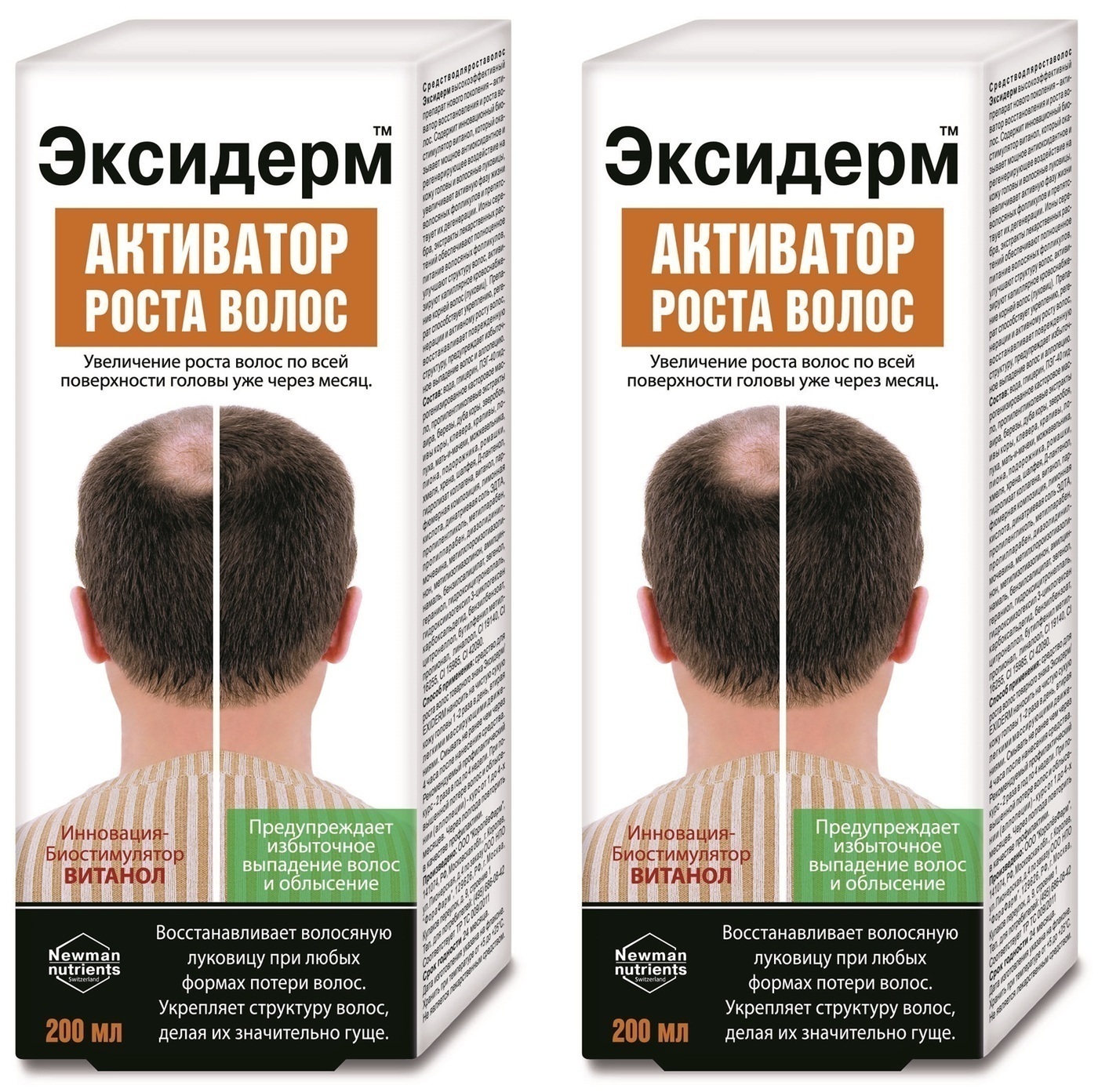 Средство для волос «Активатор роста Эксидерм» - высокоэффективный препарат нового поколения . Содержит инновационный биостимулятор витанол, который оказывает мощное антиоксидантное и регенерирующее воздействие на кожу головы и волосяные луковицы, увеличивает активную фазу жизни волосяных фолликулов и препятствует их дегенерации .
