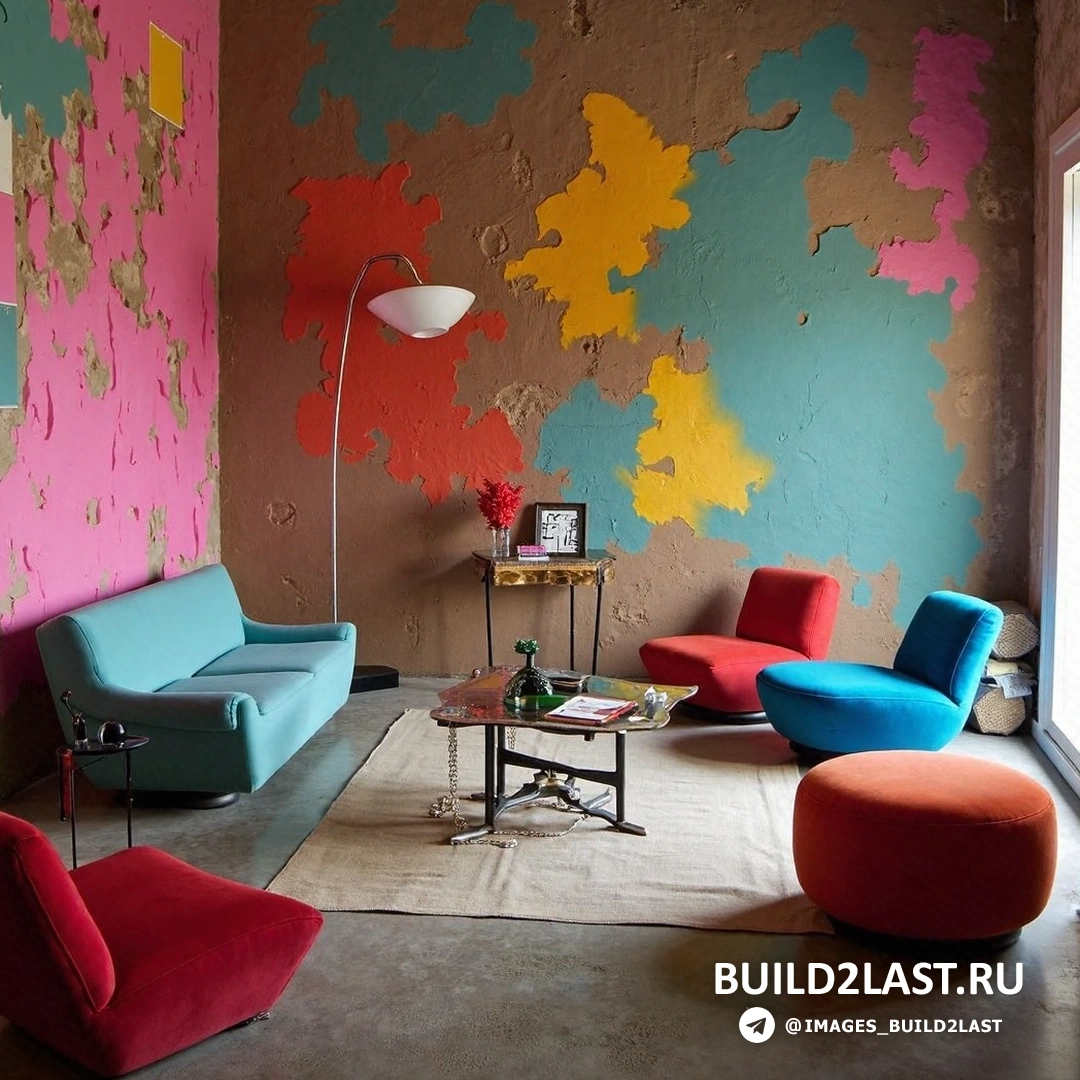 Зоны контраста. Например, яркий диван на фоне монохромной стены или насыщенные цветовые пятна в нейтральной комнате.