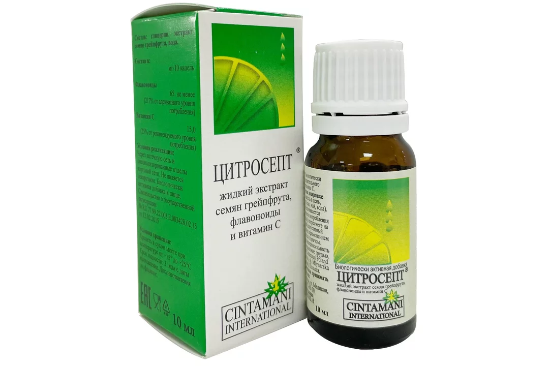 Цитросепт выпускается в виде капель для применения внутрь и наружно во флаконах по 10, 20, 50, 100 мл с капельным дозатором . В состав капель Цитросепта входят: экстракт грейпфрута, очищенная вода и пальмовый глицерин . Фармакологическое действие Цитросепта