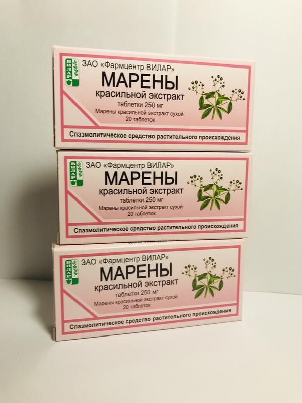 Марены красильной экстракт, таблетки 0,25 г, 20 шт . 4 отзыва Aрт . 204886 Длинный срок Фармцентр ВИЛАР АО, Россия Цена 144 руб . Купить В наличии Марены красильной экстракт, таблетки 0,25 г 20 шт . Aрт . 270714 Длинный срок ФармВИЛАР ФПК, Россия 🏪 Купить Марены красильной экстракт можно на сайте и в наших аптеках