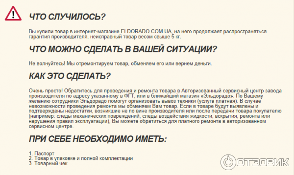 Эльдорадо гарантийный ремонт